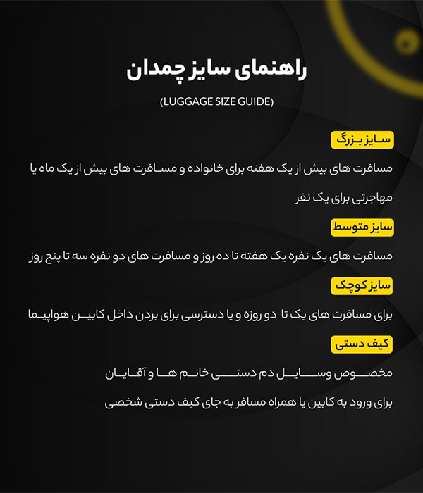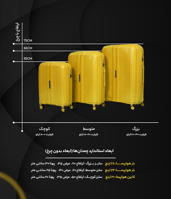 - سایز کیف دستی دارای کیف آرایشی همرنگ چمدان می باشد . یعنی سایز پنجم