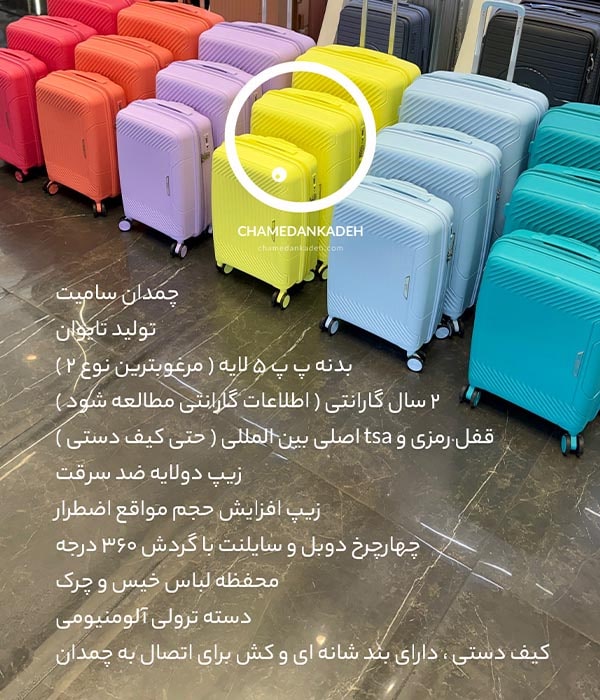اینجاییم با چمدان سامیت تینیج [ summit teenage ] تولید تایوان . سری جدید از برند سامیت . چمدان پلی پروپیلن با بهترین متریال ، پلی پروپیلن 5 لایه . بسیار با کیفیت و فول امکانات ، دارای رنگ بندی شاد و جدید . چمدانی حرفه ای که تمامی نیاز های شما رو در سفر های هوایی برطرف میکنه . سبک ، منعطف و ظاهری بسیار شیک ، مورد پسند همگان . دارای 2 سال گارانتی که پایین تر توضیح میدیم . کاملا نشکن طوری که شما براحتی میتونید این چمدان رو زیر چرخ های خودرو له کنید و در کمال ناباوری خواهید دید که به حالت اول بر میگردد . پس منظور از نشکن بودن انعطاف فوق العاده بالای این چمدان می باشد که در ویدیو هم تست بدنه رو انجام خواهیم داد . درجه خش پذیری پایین ، چمدانی که تمام نیاز های شمارو براورده میکنه در هر نوع سفری ، چه داخلی و چه خارجی . یک چمدان همه چیز تموم . امکانات چمدان در ادامه توضیح دادیم ! پیشنهاد می کنیم ویدیو معرفی چمدان سامیت تینیج رو مشاهده بفرمایید .