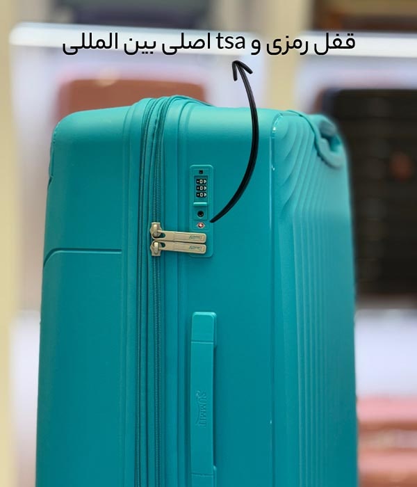 نوع قفل بکار رفته در این چمدان قفل TSA می باشد . قفل TSA در سفر های خارحی و بین المللی کاربرد دارد . قفل های چمدانی که توسط TSA تایید شده اند دارای کلید اصلی جهانی هستند که فقط ماموران امنیتی فرودگاه ها آن را در اختیار دارند و از آن برای باز کردن چمدان استفاده و پس از بازرسی ، دوباره آن را قفل می کنند ، در این صورت دیگر نیازی به شکستن قفل چمدان نیست .